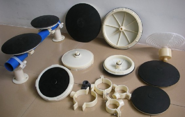 盘式曝气器(曝气盘)在间歇与连续曝气过程中采用节能设计、安装成本低、可靠性高,性能卓越。精密钻孔有利于高效氧气传输及利用:为适用曝气系统的规格要求,可使用不同的钻孔模式来调节工作压力,如不同的狭缝长度、距离、钻孔密度。钻孔直径在184和295毫米之间为适用广泛领域而配制的不同标准和特殊之膜片材料